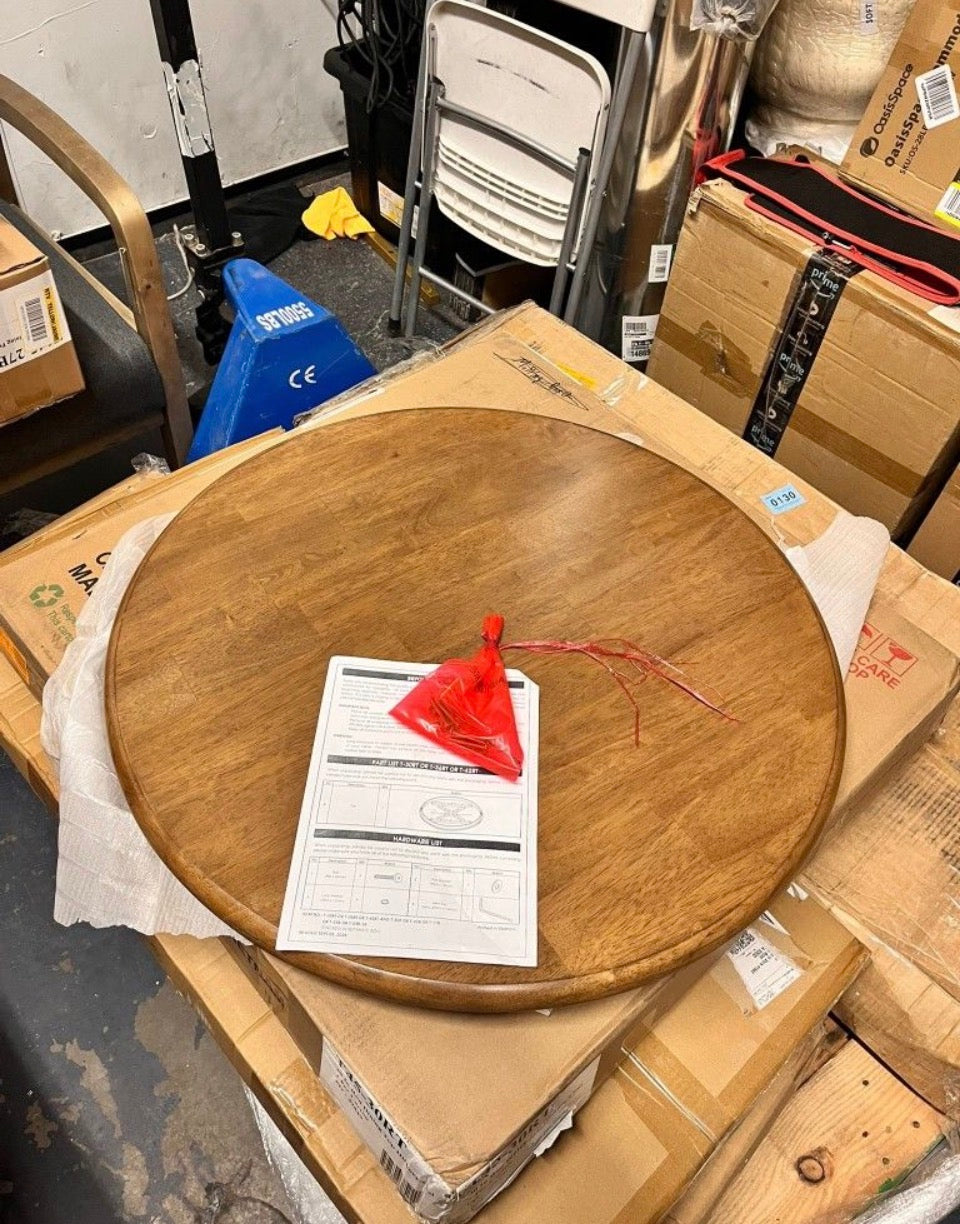 Open Box New International Concepts Hickory/Stone 30 in. Round Top Solid Wood Counter Height Dining Table