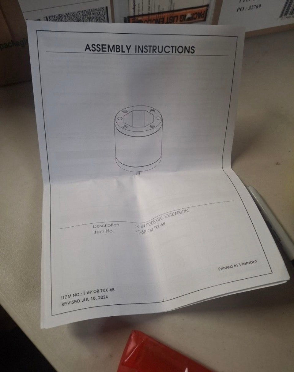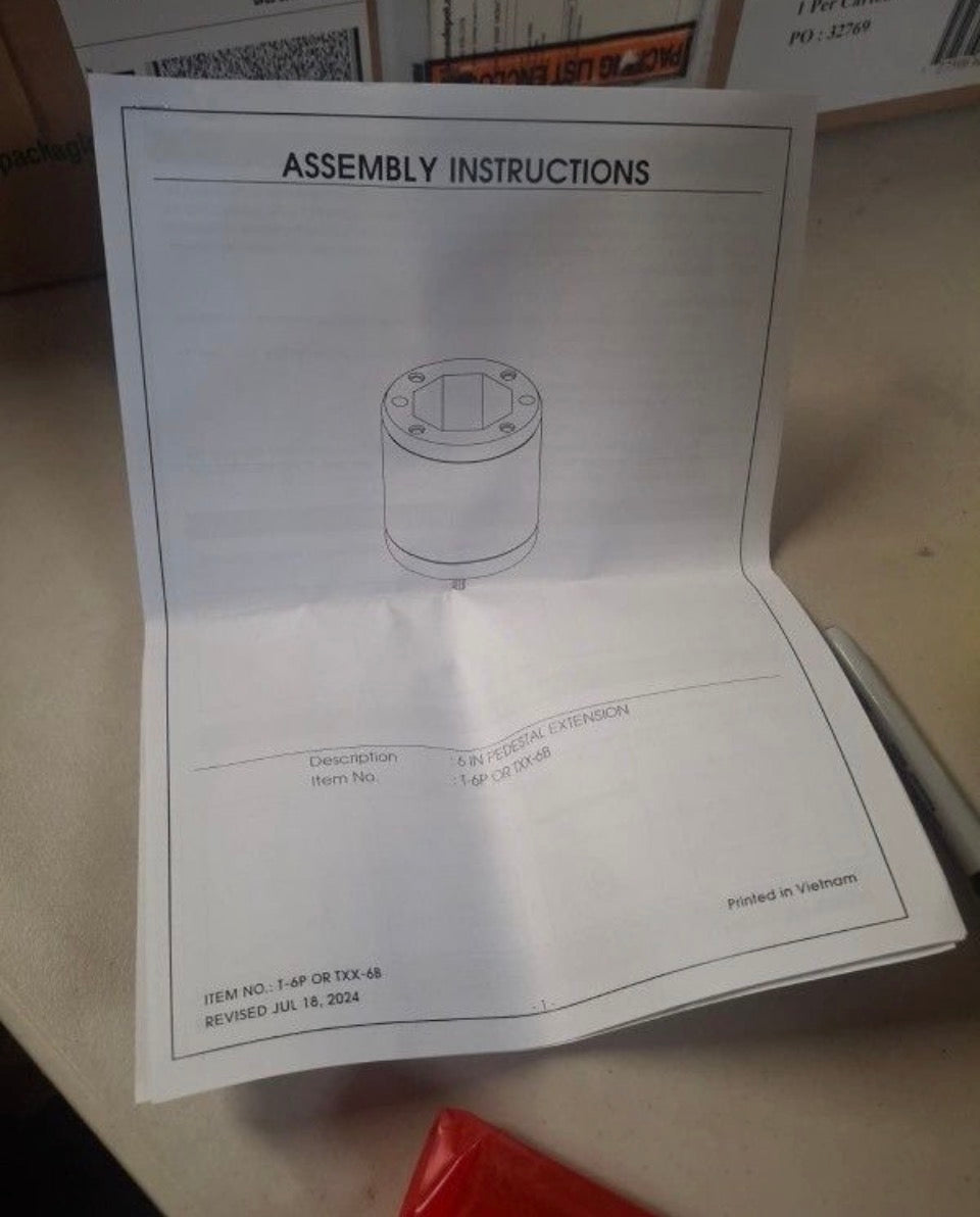 Ships in 3-cartons; top, base and extender
