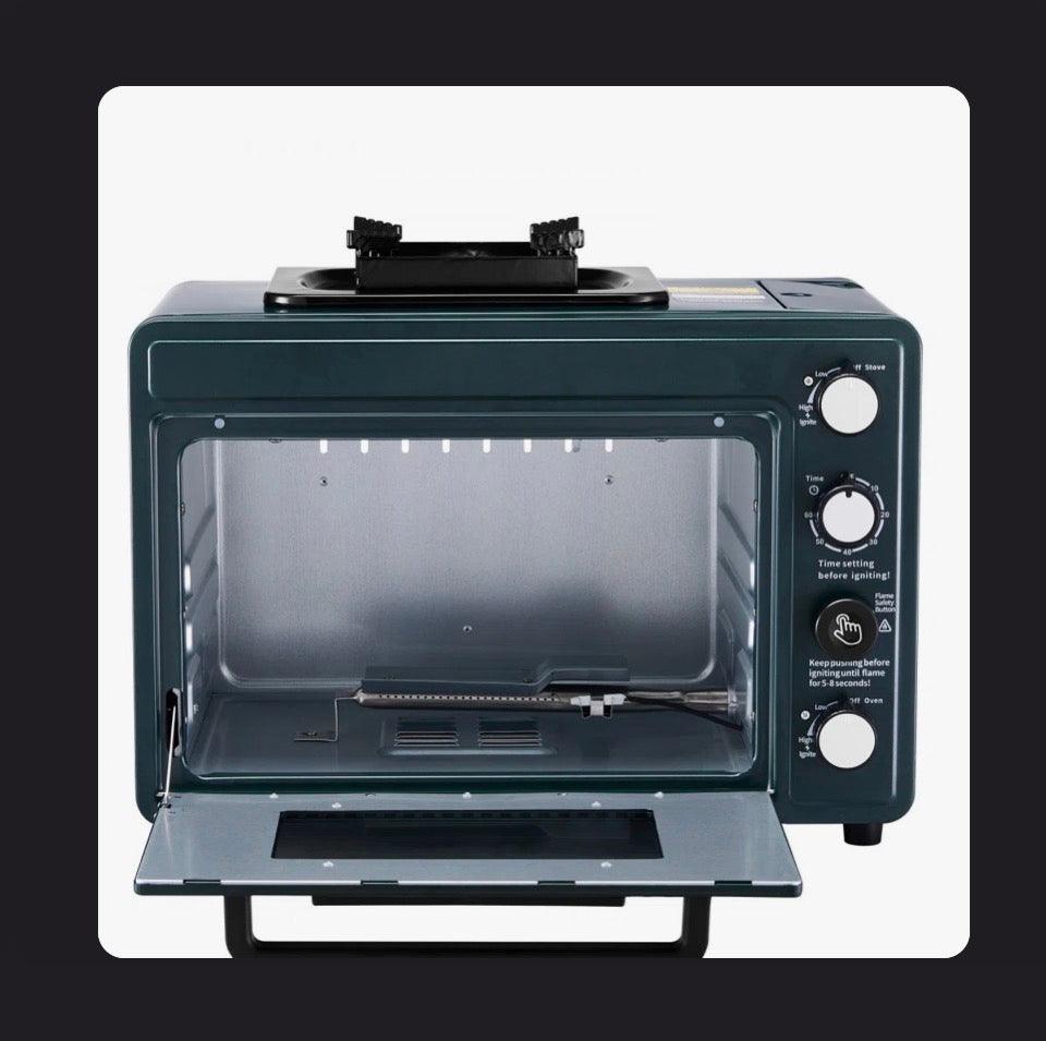- 2-in-1 Quick Cooking: Our high-performance stove combined with a full-function oven, featuring a stove on top and an oven below. This versatile design saves time and effort for efficient outdoor cooking