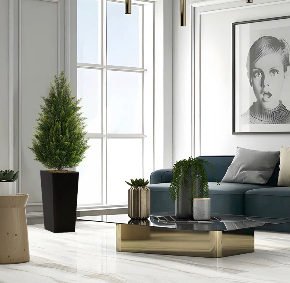 Vitalismo Faux Cedar Tree In Black Pot-UV Rated Potted Plant for Home Decor Outdoor or Indoor (Set of 2)