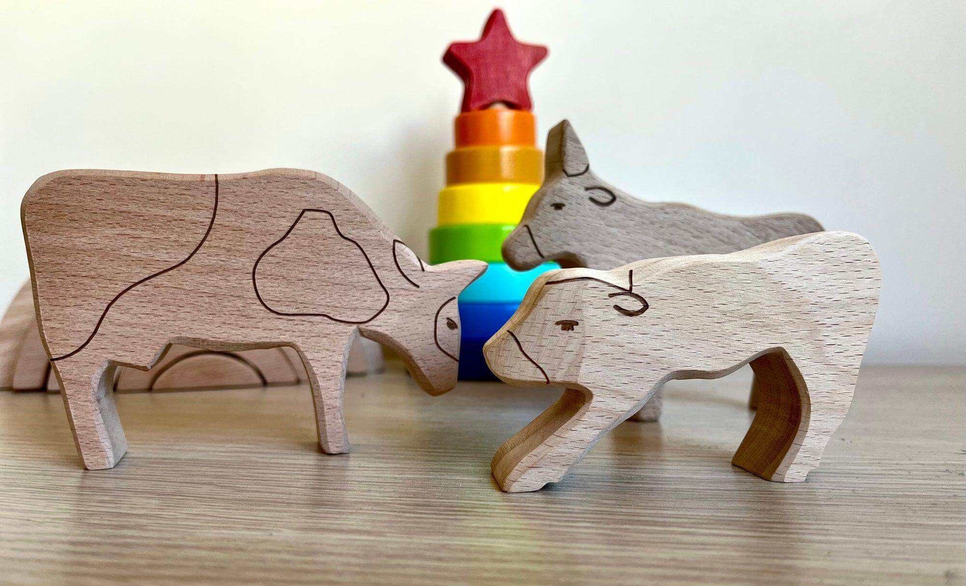 - Enhance your child's creativity and imagination with this beautiful wooden farm animals set