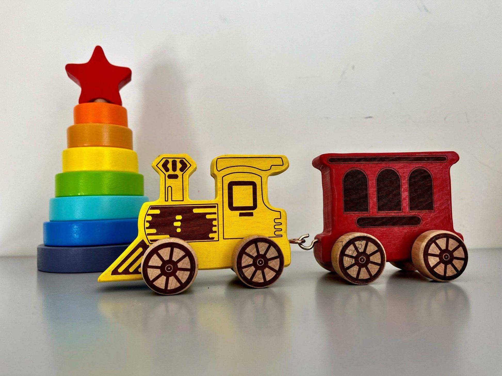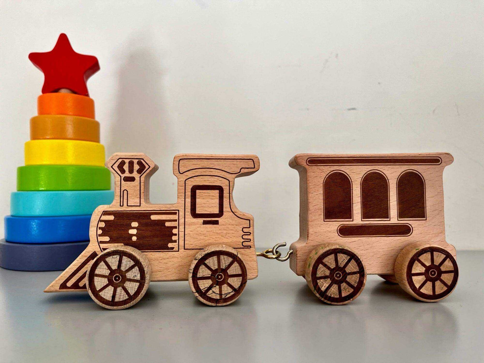 This Wooden Letter Train Puzzle makes a wonderful present for toddlers who are passionate about trains. It encourages creative play as well as literacy development as kids learn to recognize letters and spell their names. Handcrafted from natural beech wood with smooth-edged letters and carriages, this customizable puzzle allows your kid to arrange and rearrange it any way they choose. Available in natural wood or vibrant colors, this puzzle is completely safe and perfect for birthdays, baby showers, Easter, and the holiday season. Make this unique toy a part of your child's collection!