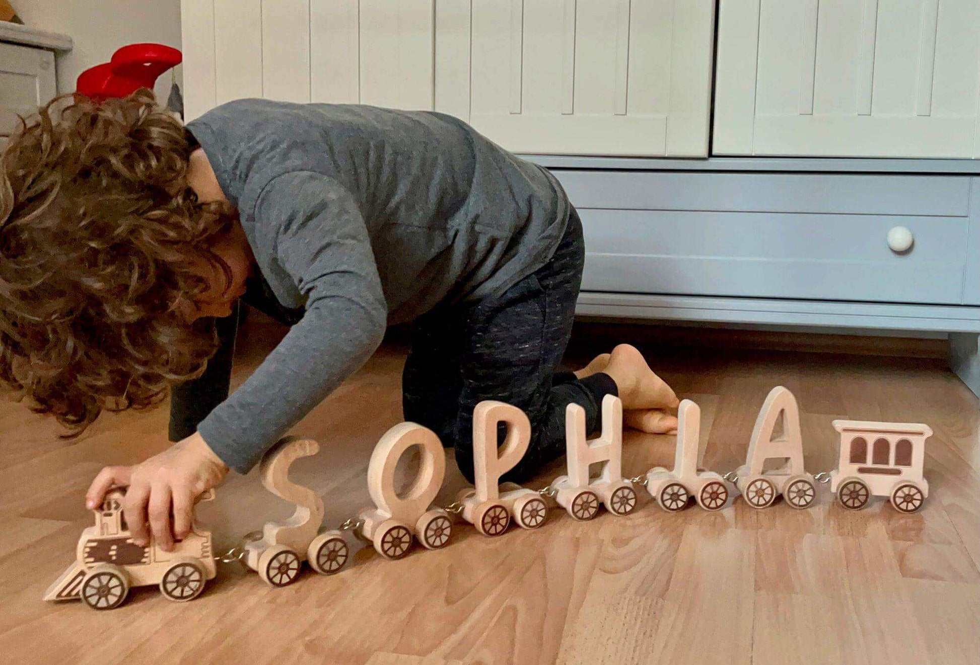 You can select the only train and wagon option or train and wagon with your kid's letters from the dropdown menu.