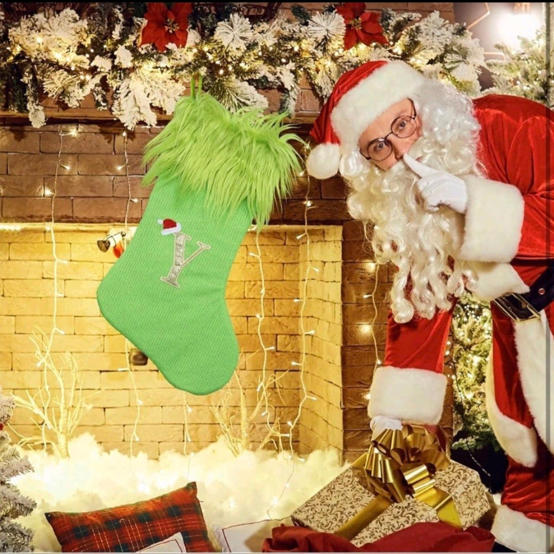 yulian Christmas Stockings,Green Monogram Christmas Stocking